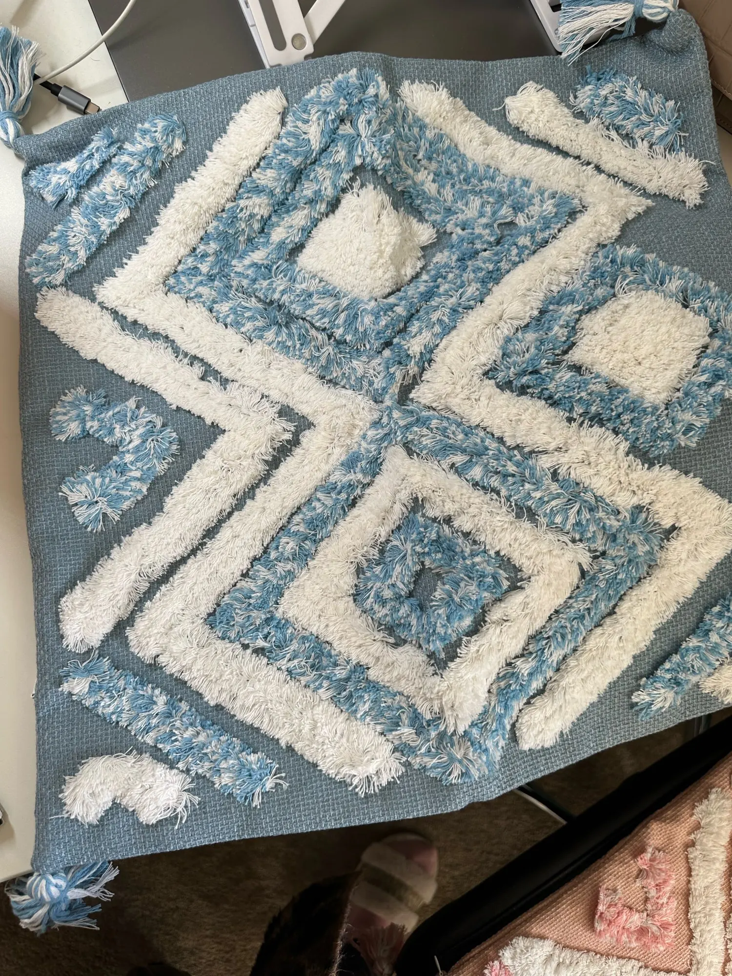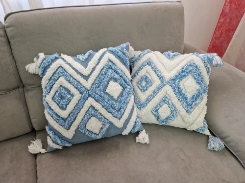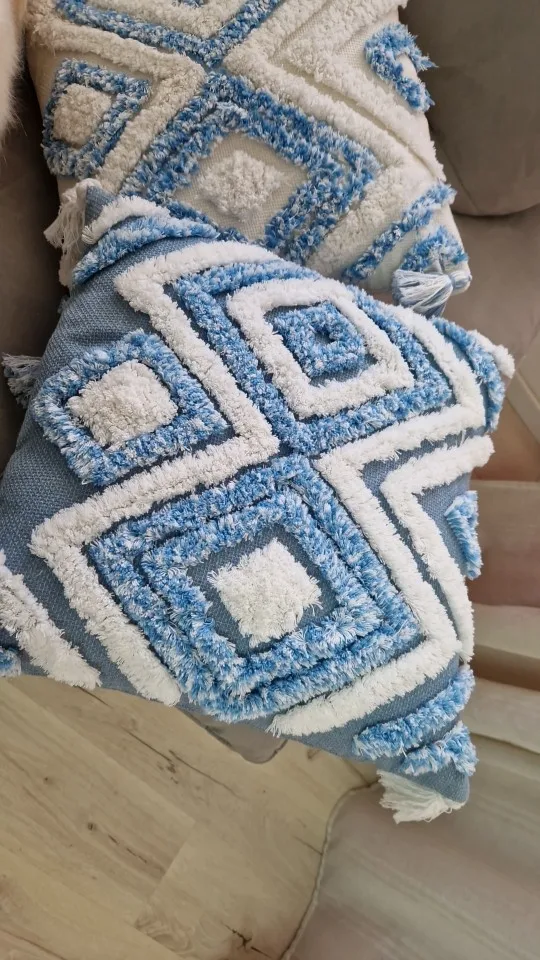 Bring comfort and elegance to your home with the Blue Geometric Pattern Tufted Pillow, and let it transform your space! 💙✨🌸