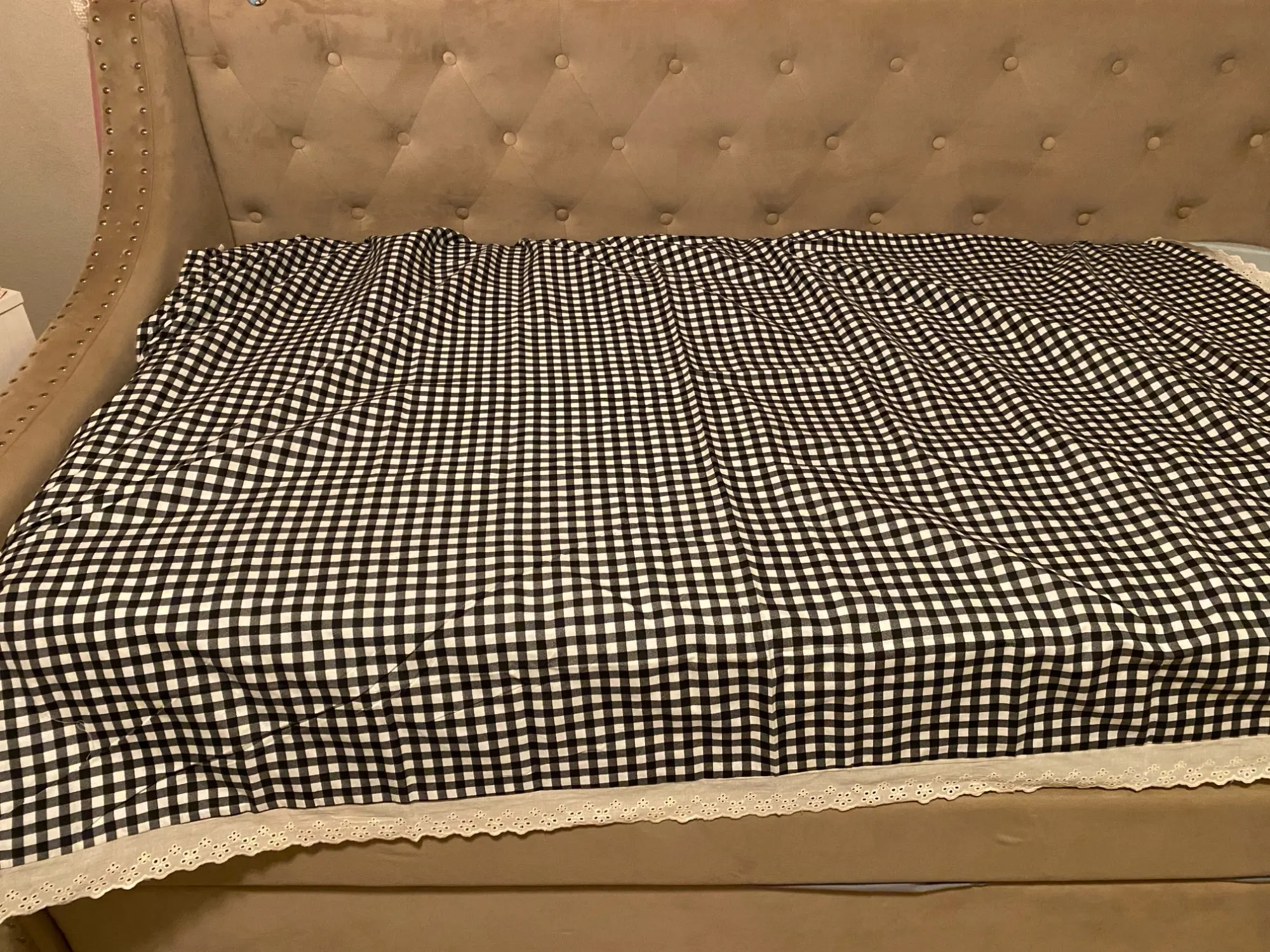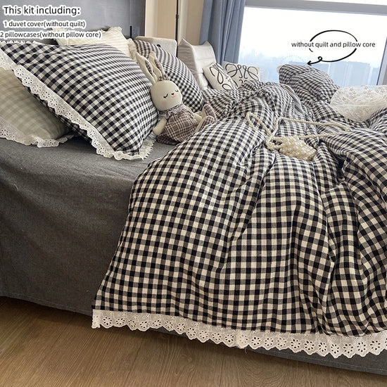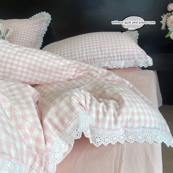 A soft, romantic take on classic gingham, this bedding set blends timeless check patterns with delicate lace details for a cozy yet refined bedroom look (˘︶˘)♡