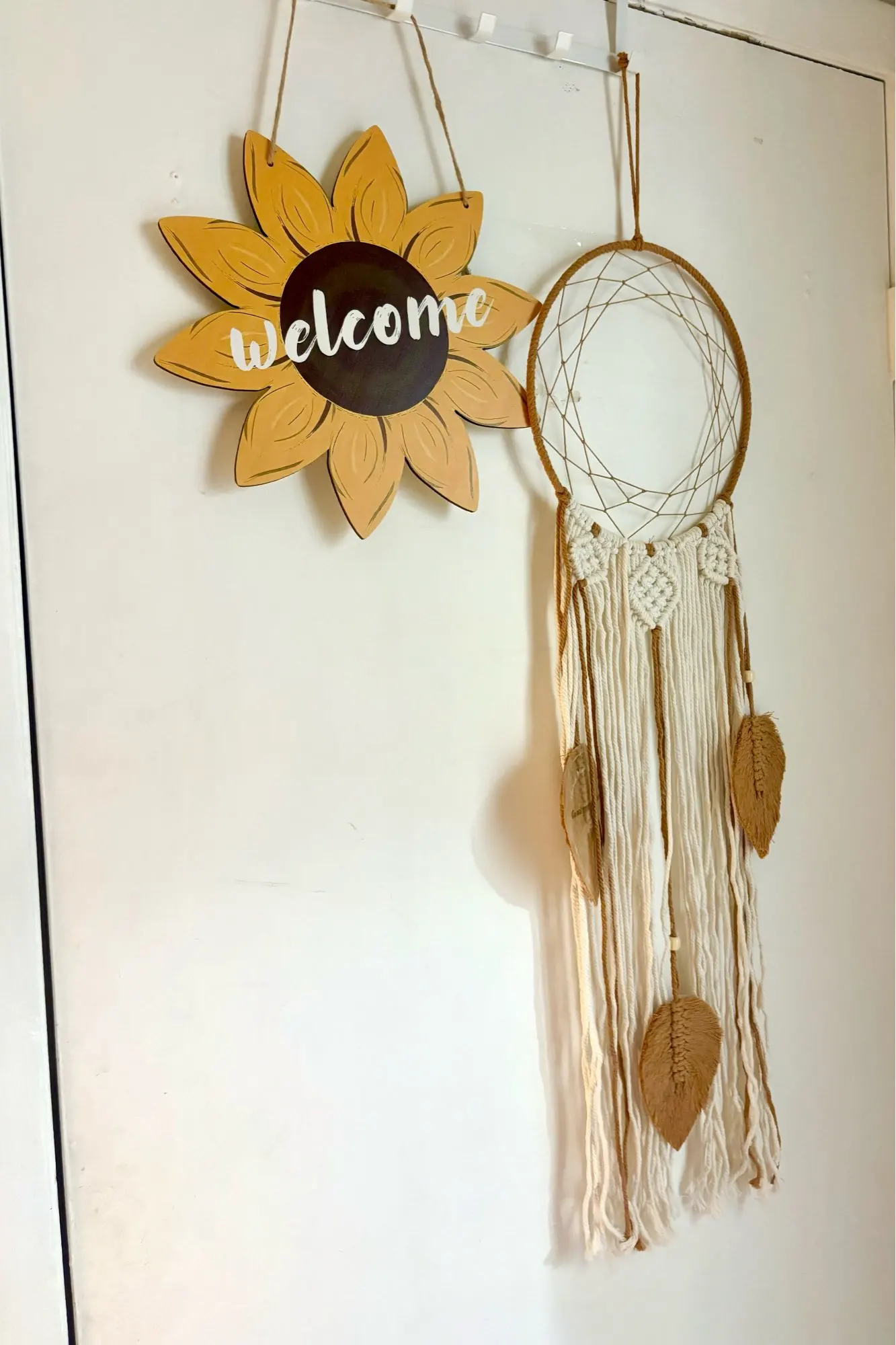 Bring tranquility and boho charm to your home with this Macrame Leaf Dream Catcher. With its intricate, handcrafted design, this dream catcher captures the essence of nature and offers a peaceful, serene vibe to any room.