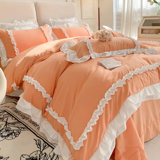 This bedding set features fluffy ruffles, gentle colors, and a cloud-like feel that instantly transforms your space into a warm, elegant haven.