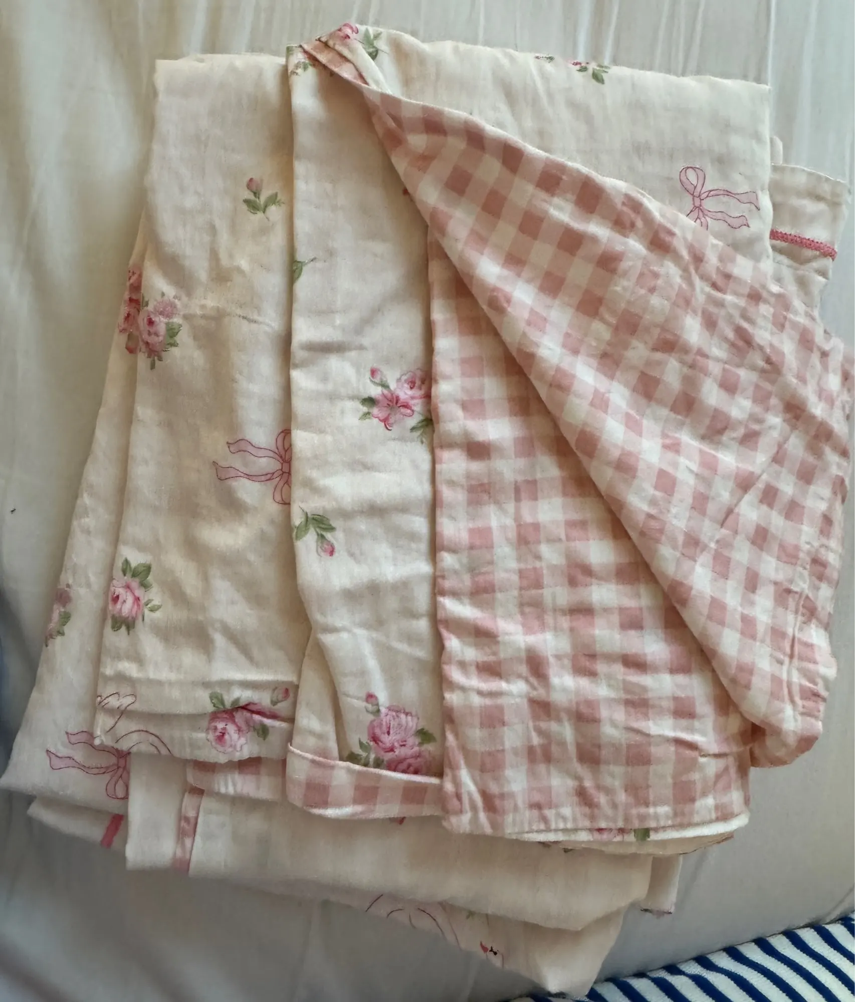brings a soft, romantic, and ultra-cozy charm to your bedroom with its delicate pink rose print, blush gingham accents, and creamy pastel base. Designed to feel gentle, feminine, and beautifully aesthetic, this set turns your bed into a dreamy coquette-inspired escape that feels warm, sweet, and irresistibly cute (。•́‿•̀。) 🎀
