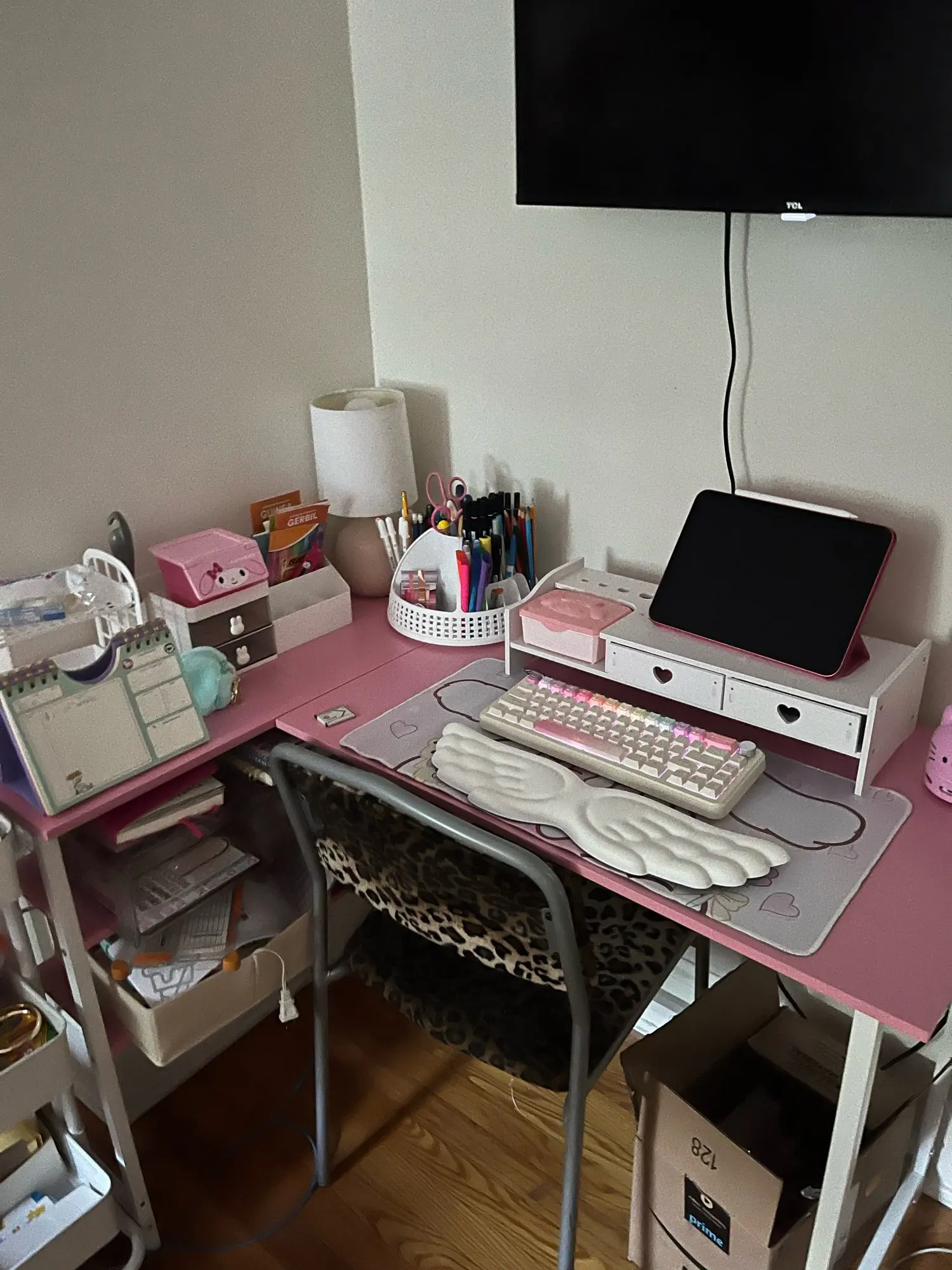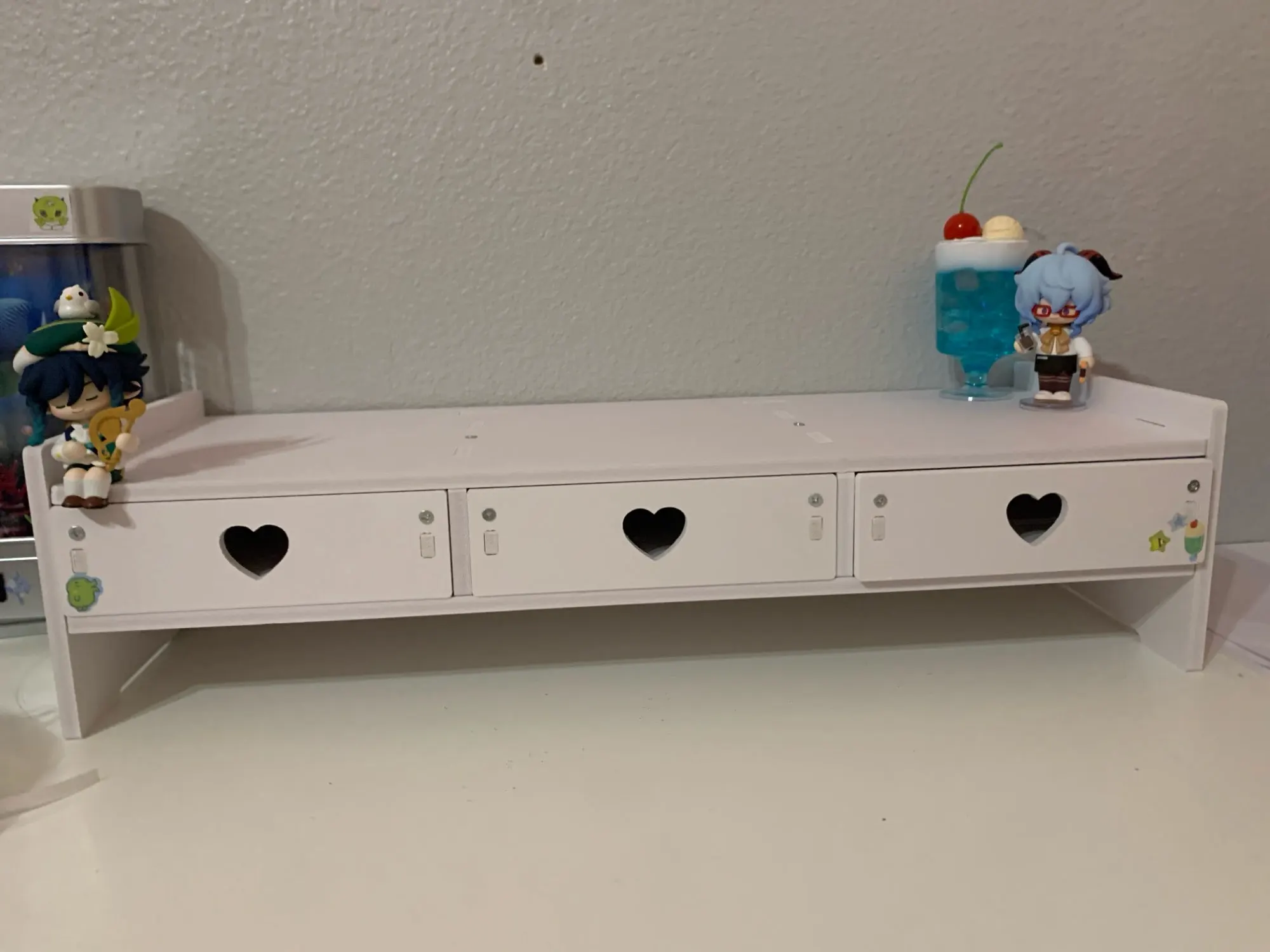 • Cute & Soft Girl Aesthetic 🎀🌸: The heart-shaped drawer handles and feminine design instantly give your desk a dreamy, cozy vibe — perfect for soft girl, coquette, kawaii, or pastel room themes.