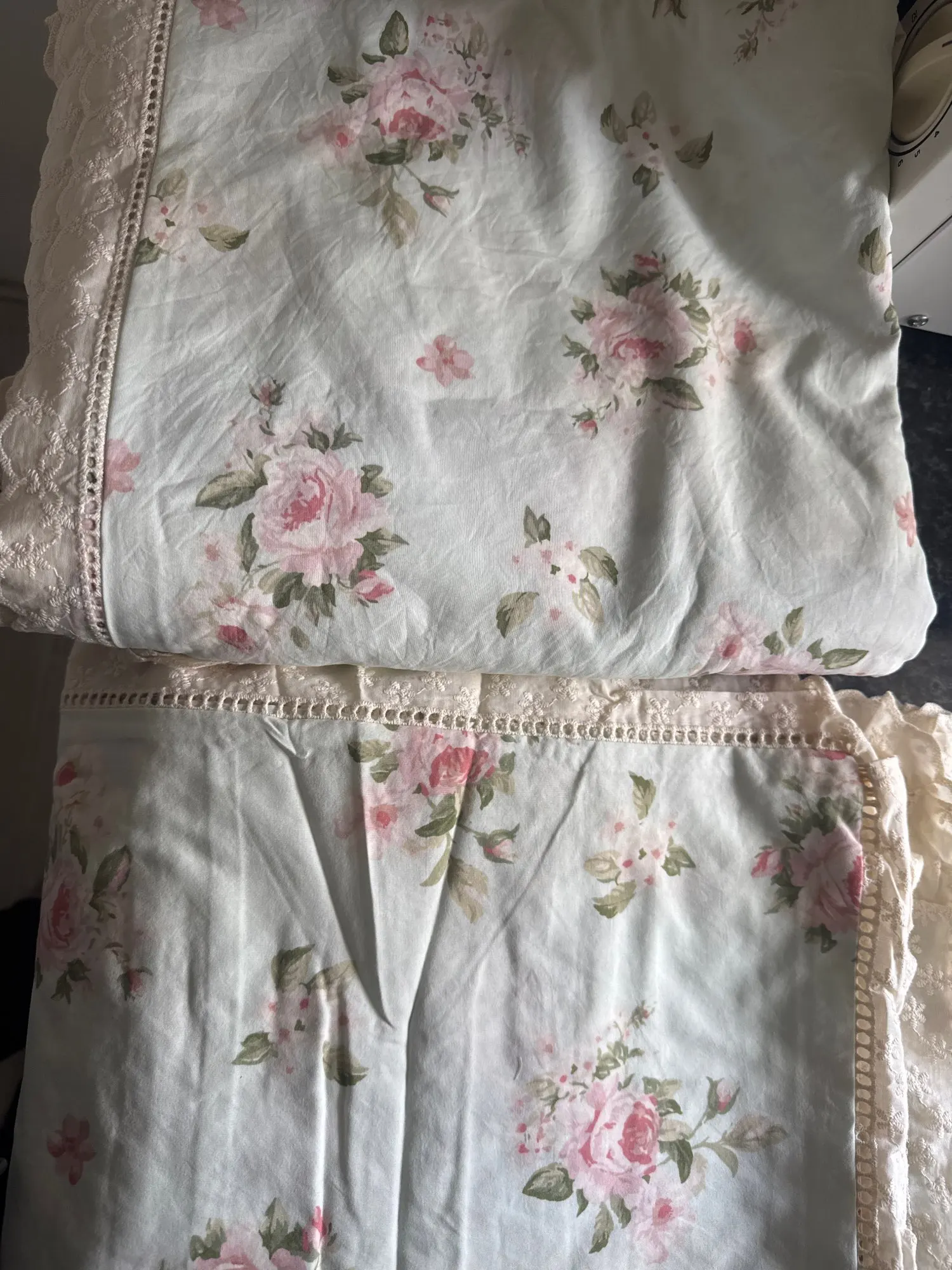 A gentle, romantic bedding set inspired by vintage rose gardens and quiet mornings by the window (。・ω・。)