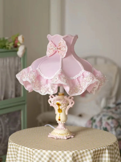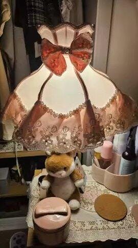 The Coquette Lace Ruffle Table Lamp brings soft, romantic charm to your room. With its layered ruffle shade, delicate embroidery, and pretty pink tones, this lamp instantly transforms your space into a dreamy, elegant coquette setup (。˃ ᵕ ˂ )♡🎀✨